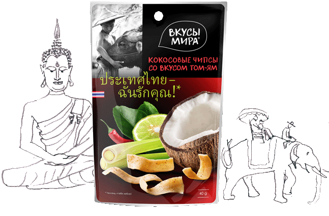 «Вкусы мира» всегда следят за тем, чтобы ваши любимые снеки из разных стран мира приносили только удовольствие и пользу. Поэтому кокосовые чипсы в соусе том ям сохраняют всю пользу натурального кокоса, не содержат масла и дополнительных жиров. Этим неповторимым вкусом можно наслаждаться бесконечно!